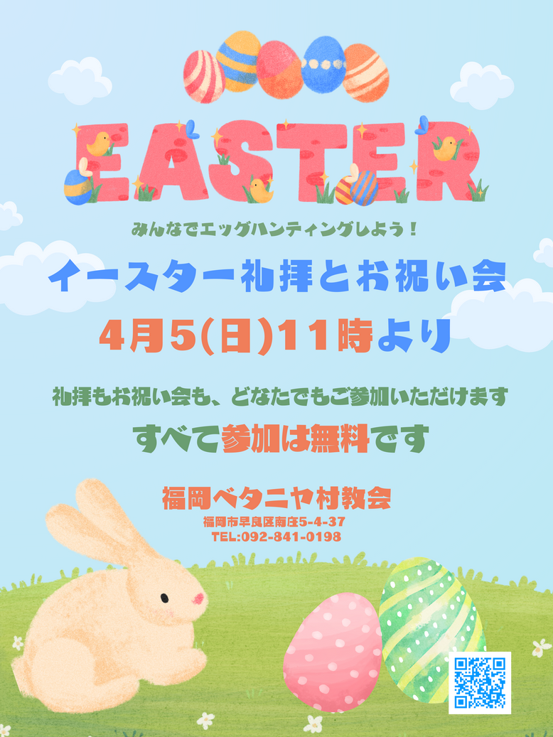 福岡ベタニヤ村教会のイースターは、11時からの礼拝と午後のお祝い会の二本立てになっています。